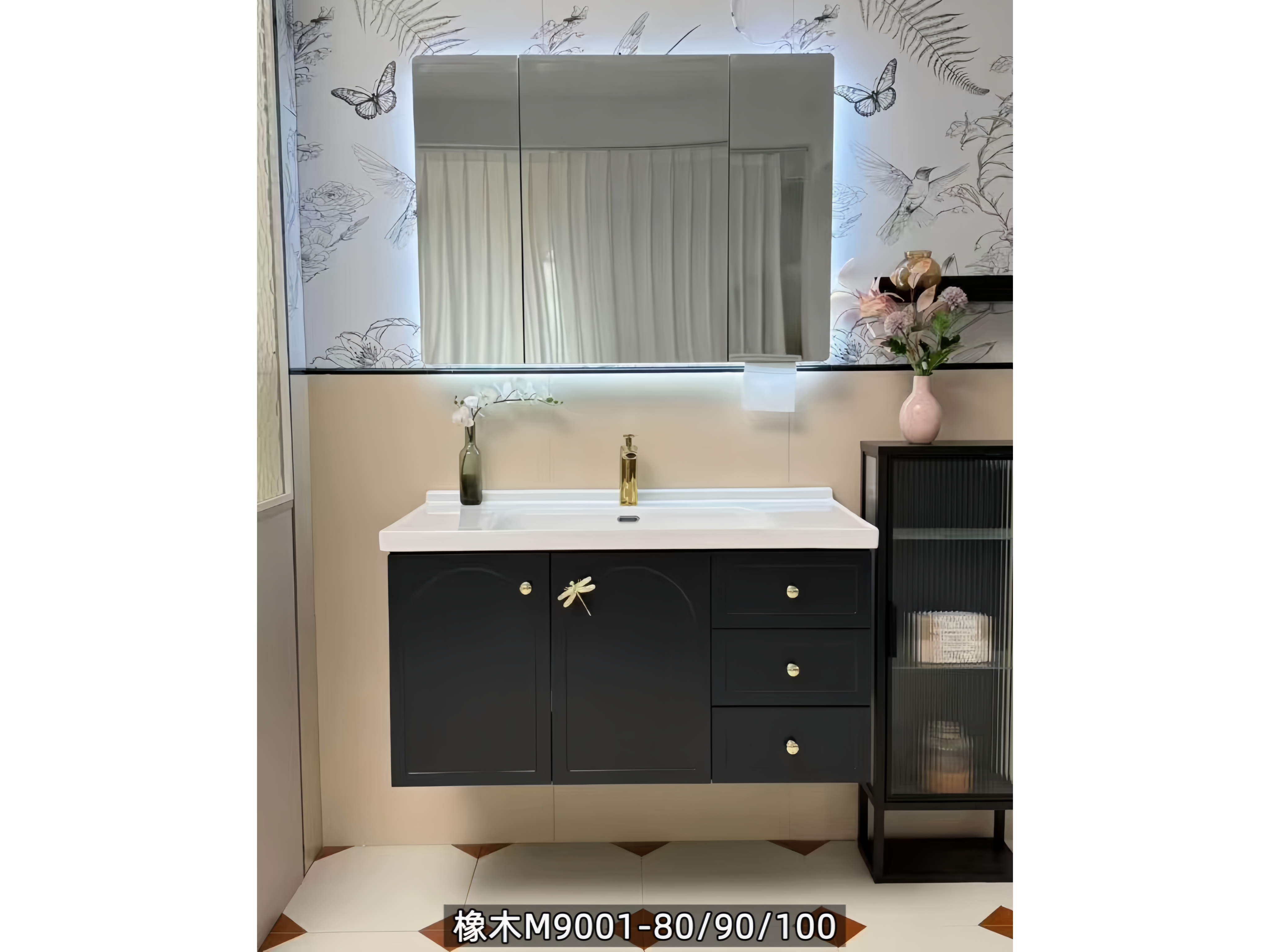 橡木款-黑色,80-90-100三种尺寸、三种颜色,搭配50宽陶瓷盆。
