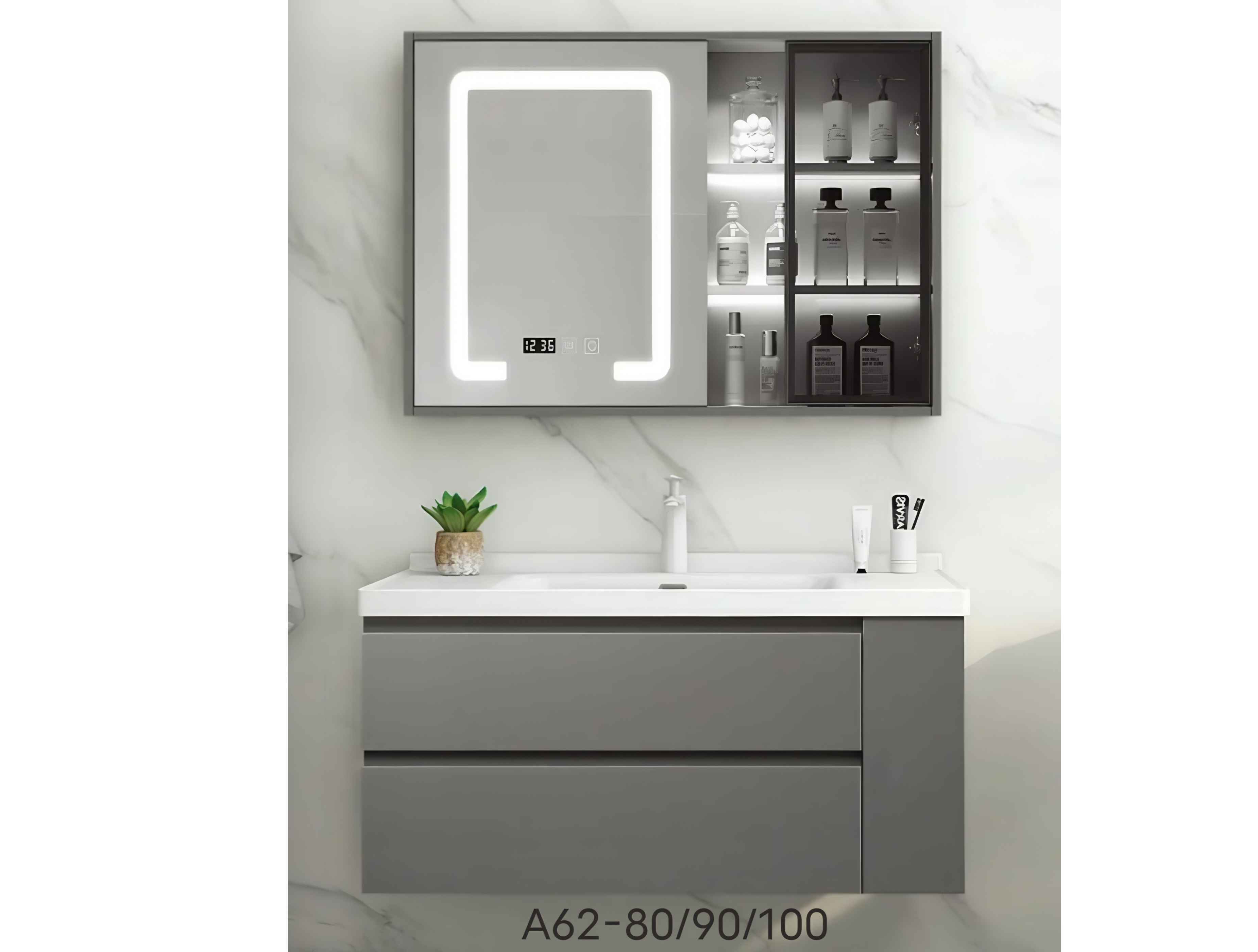 颜色:灰色 马桶伴侣浴室柜,伴侣边柜可左右自由安装。80/90/100 款式都是上下双抽款式。