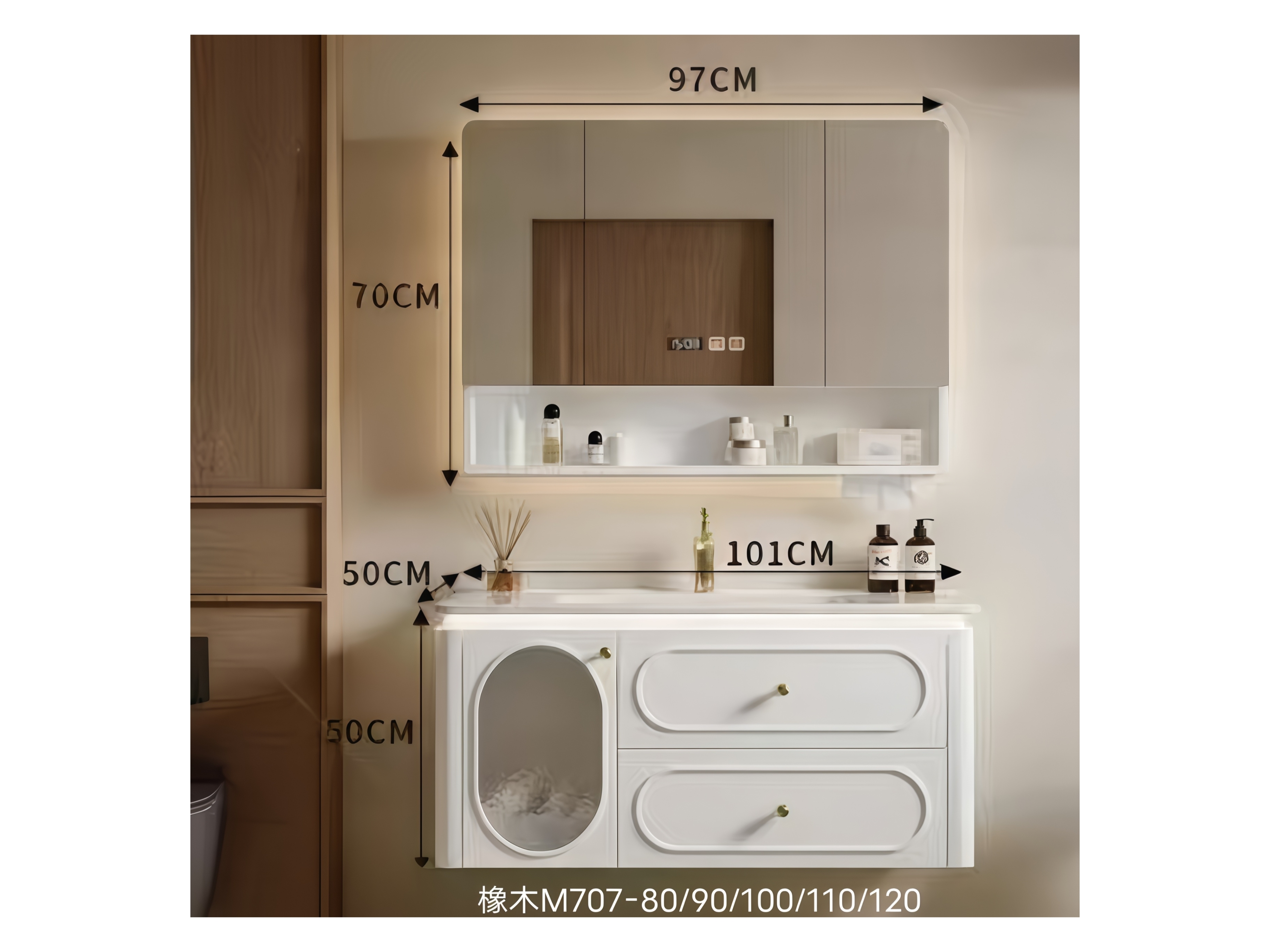橡木款,奶油白色,80-90-100-110-120尺寸齐全,搭配50宽陶瓷盆。